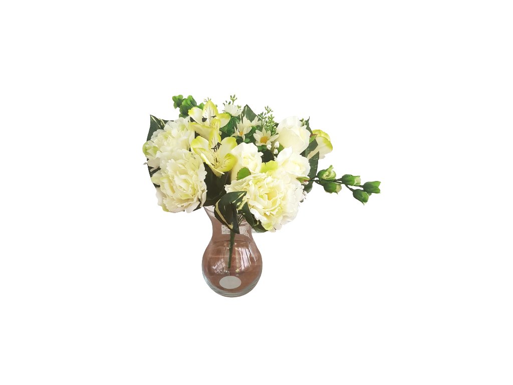 Pivoňka & Alstromerie kytice krémová 38cm umělá