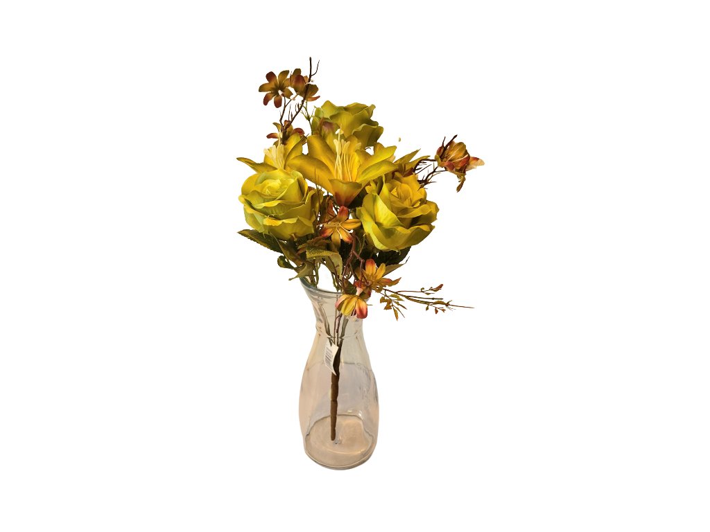 Růže, Kopretiny a Lilie kytice x7 zelená 44cm umělá