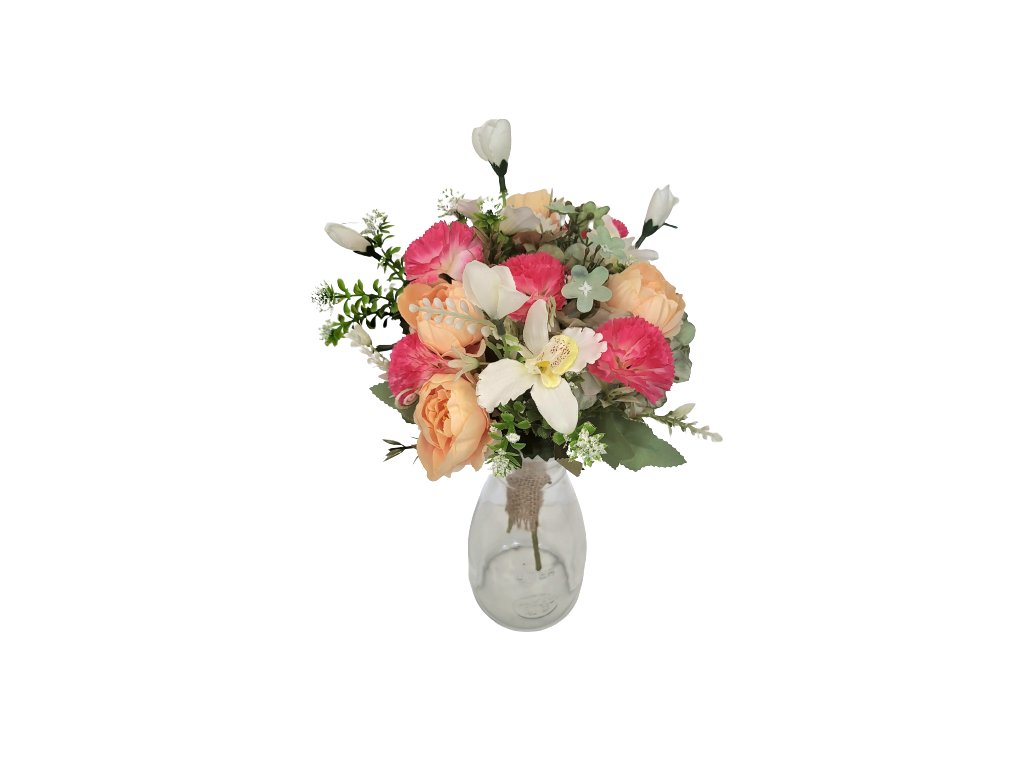 Vázaná kytice Exclusive karafiáty, pivoňky a doplňky 31cm umělá