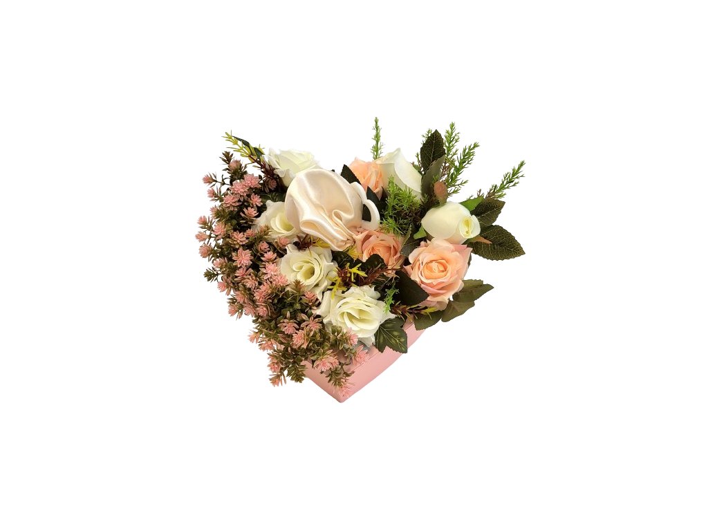 Flower Box srdce s mixem umělých květin a doplňky 33cm x 25cm x 12cm