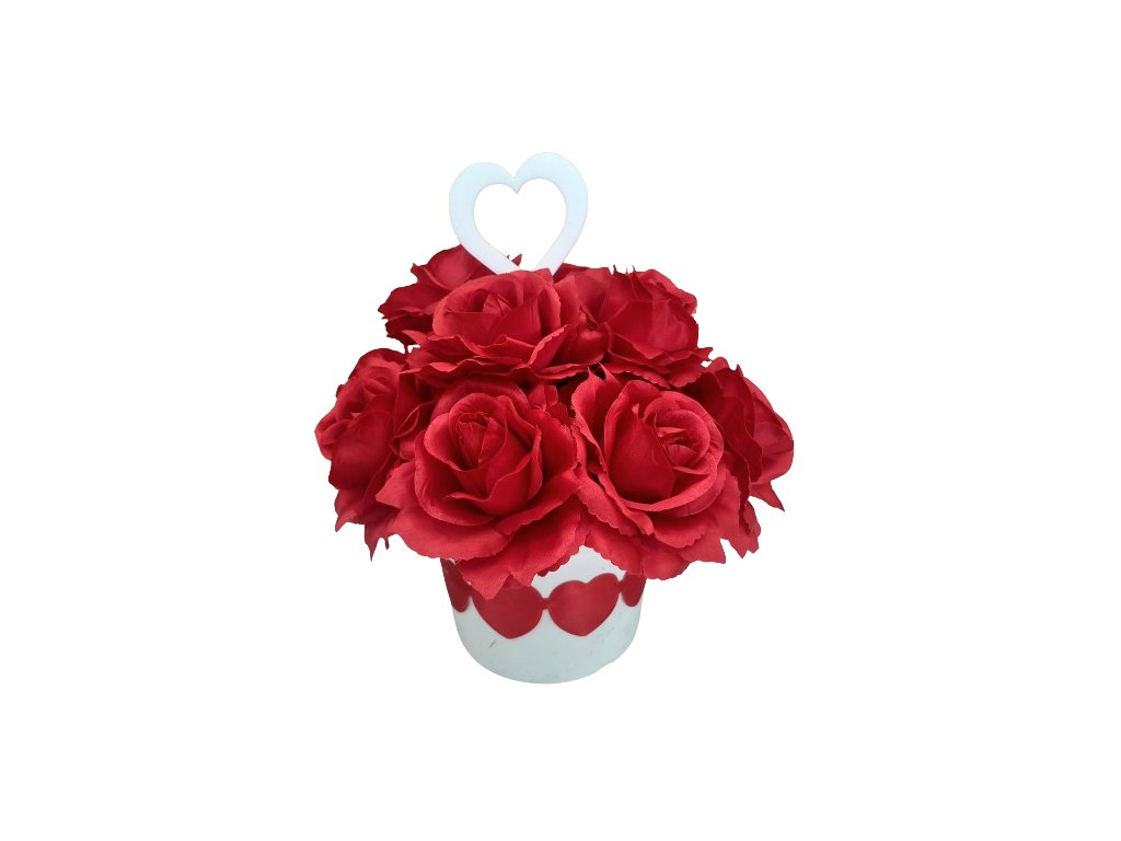 Umělé růže se srdcem v květináči 25cm x 28cm