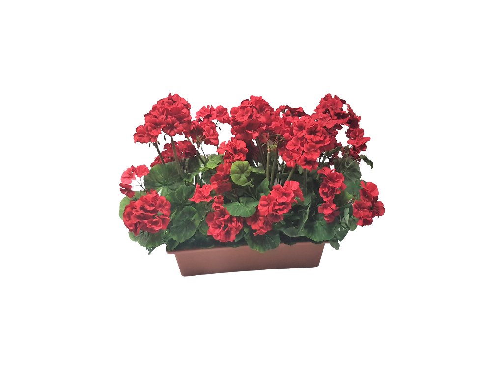 Umělý Muškát Pelargonie v truhlíku 40cm x 35cm x výška 45cm červená