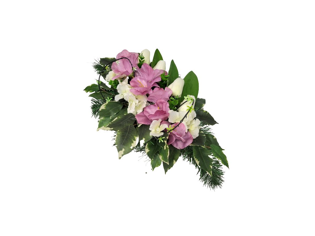 Smuteční aranžmán betonka exclusive umělé tulipány, hortenzie, gladiola a doplňky 52cm x 26cm x 15cm AS461