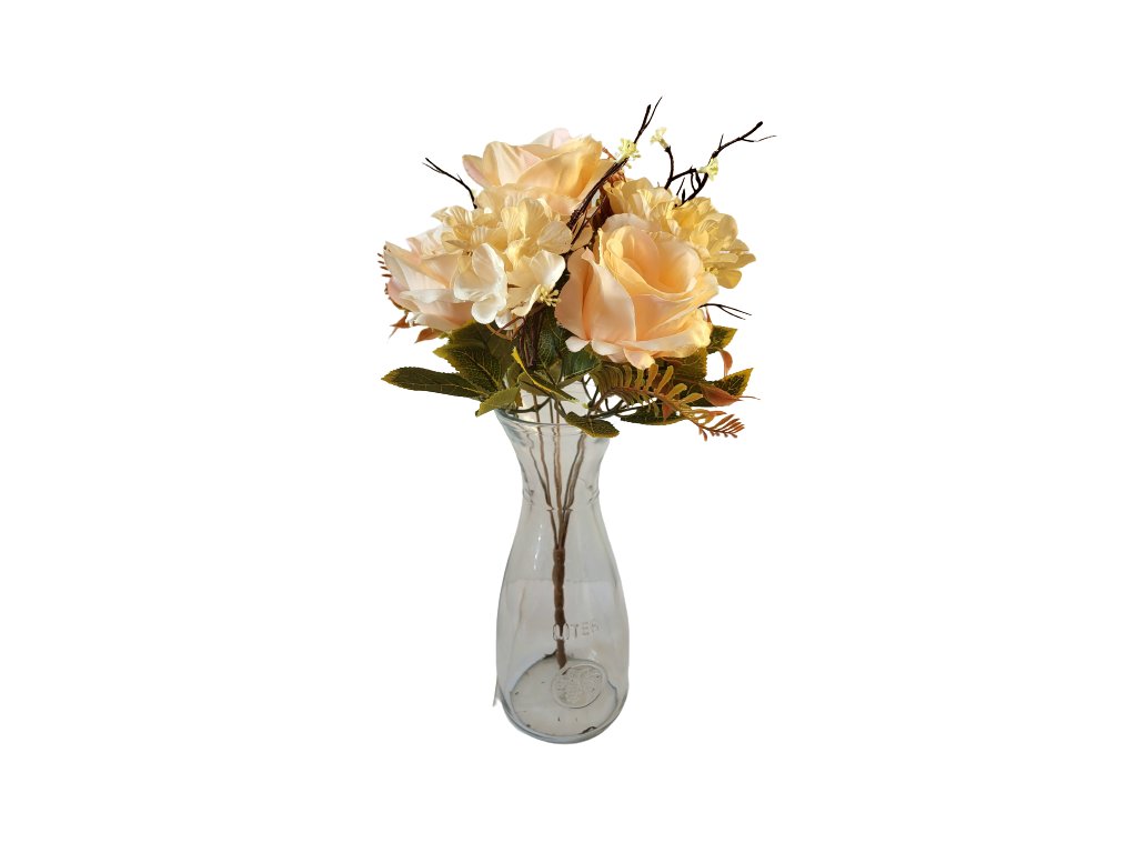 Růže a Hortenzie kytice x7 44cm sv. růžová umělá