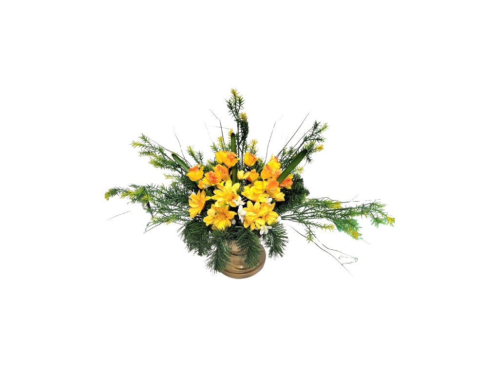 Smuteční aranžmán betonka umělý narcis a doplňky 65cm x 24cm x 42cm AS767
