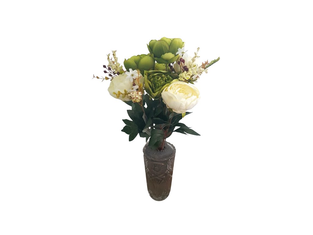 Exclusive Pivoňky Peonie kytice x11 50cm zelená & krémová umělá