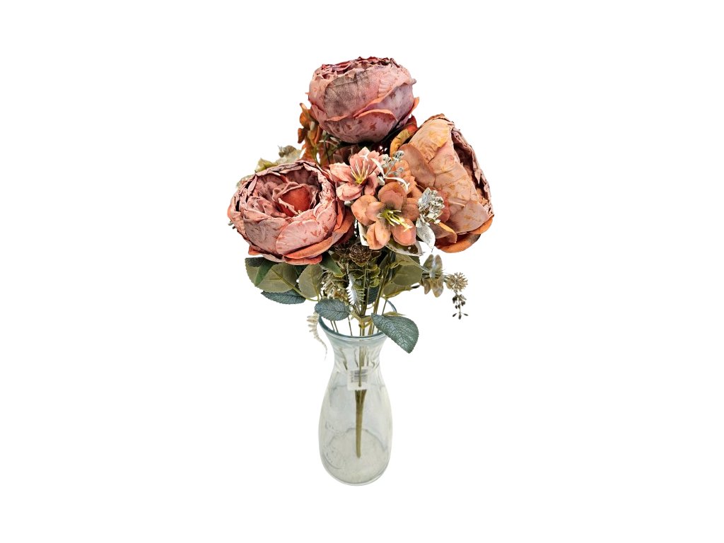 Pivoňky Peonie & Hortenzie kytice 50cm umělá oranžovo-hnědá