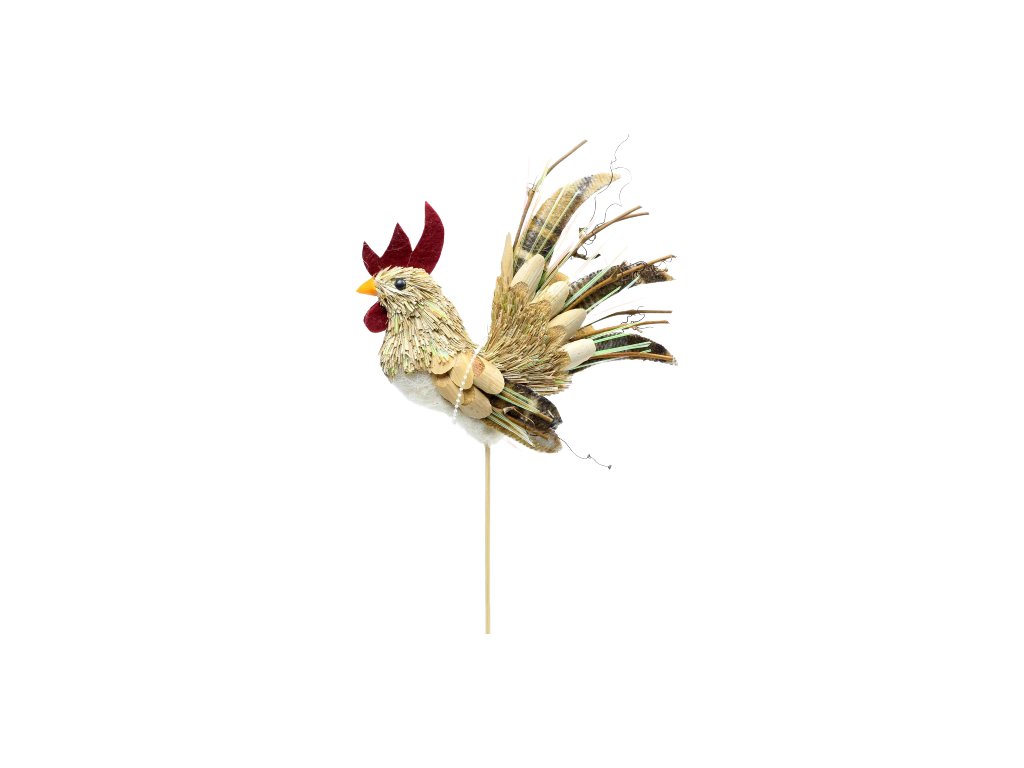 Velikonoční kohout zápich 14cm x 3cm x 14cm sláma / textil