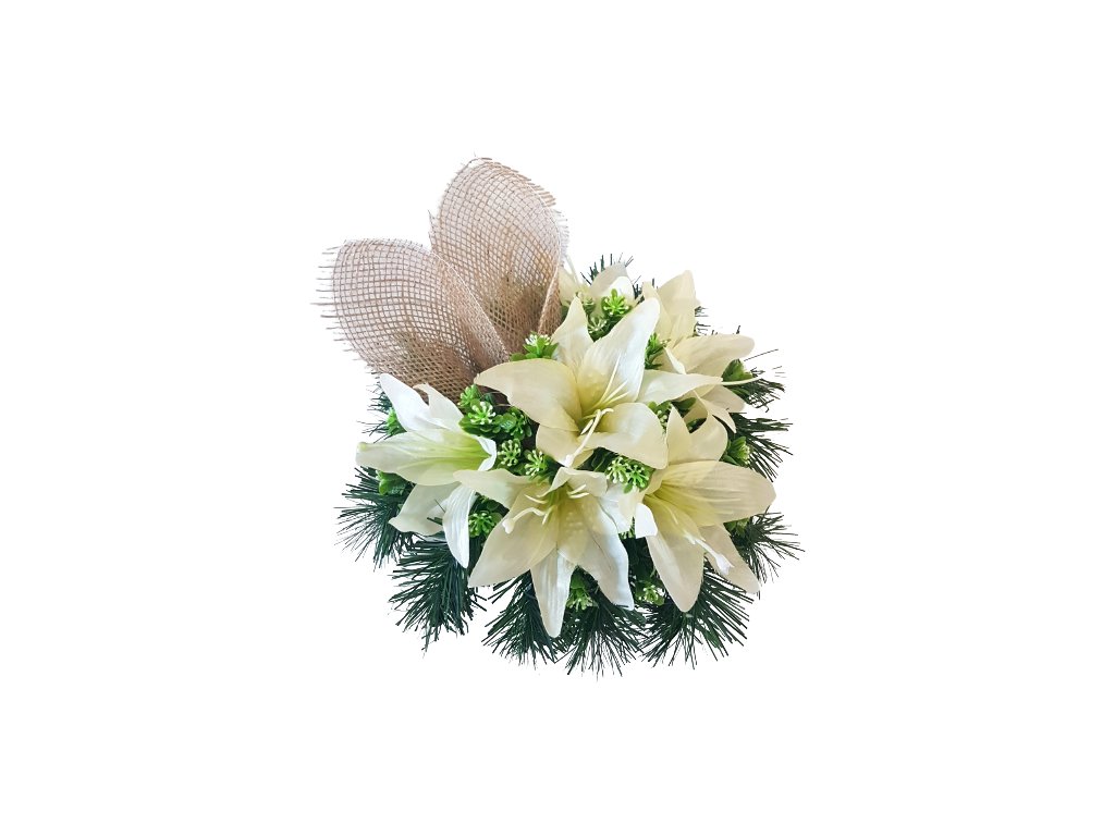 Smuteční aranžmán betonka umělé lilie & doplňky 28cm x 18cm AS386