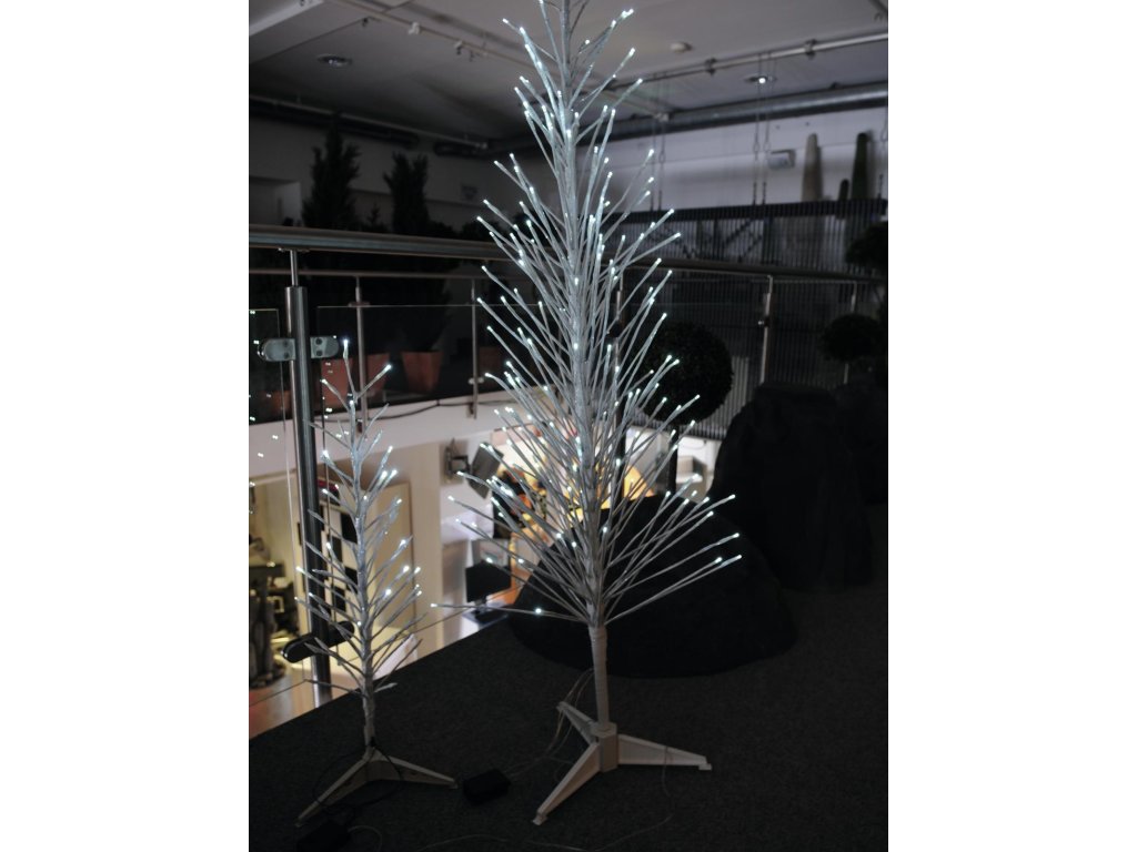 Netradiční dekorativní vánoční stromeček s bílým LED osvětlením. Výška stromku 120 cm, teplota barev svícení studená bílá. Kmen a větvičky v bílé barvě jsou lehce tvarovatelné. Celkem je stromek osazen 152 LED diodami, není tedy třeba dokupovat světelný řetěz. K dispozici je několik automatických programů svícení. Dodáváno včetně stojánku.