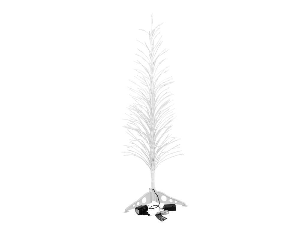 Netradiční dekorativní vánoční stromeček s bílým LED osvětlením. Výška stromku 155 cm, teplota barev svícení studená bílá. Kmen a větvičky v bílé barvě jsou lehce tvarovatelné. Celkem je stromek osazen 184 LED diodami, není tedy třeba dokupovat světelný řetěz. K dispozici je několik automatických programů svícení. Dodáváno včetně stojánku.