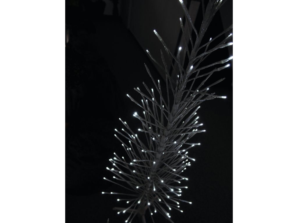 Netradiční dekorativní vánoční stromeček s bílým LED osvětlením. Výška stromku 80 cm, teplota barev svícení studená bílá. Kmen a větvičky v bílé barvě jsou lehce tvarovatelné. Celkem je stromek osazen 56 LED diodami, není tedy třeba dokupovat světelný řetěz. K dispozici je několik automatických programů svícení. Dodáváno včetně stojánku.