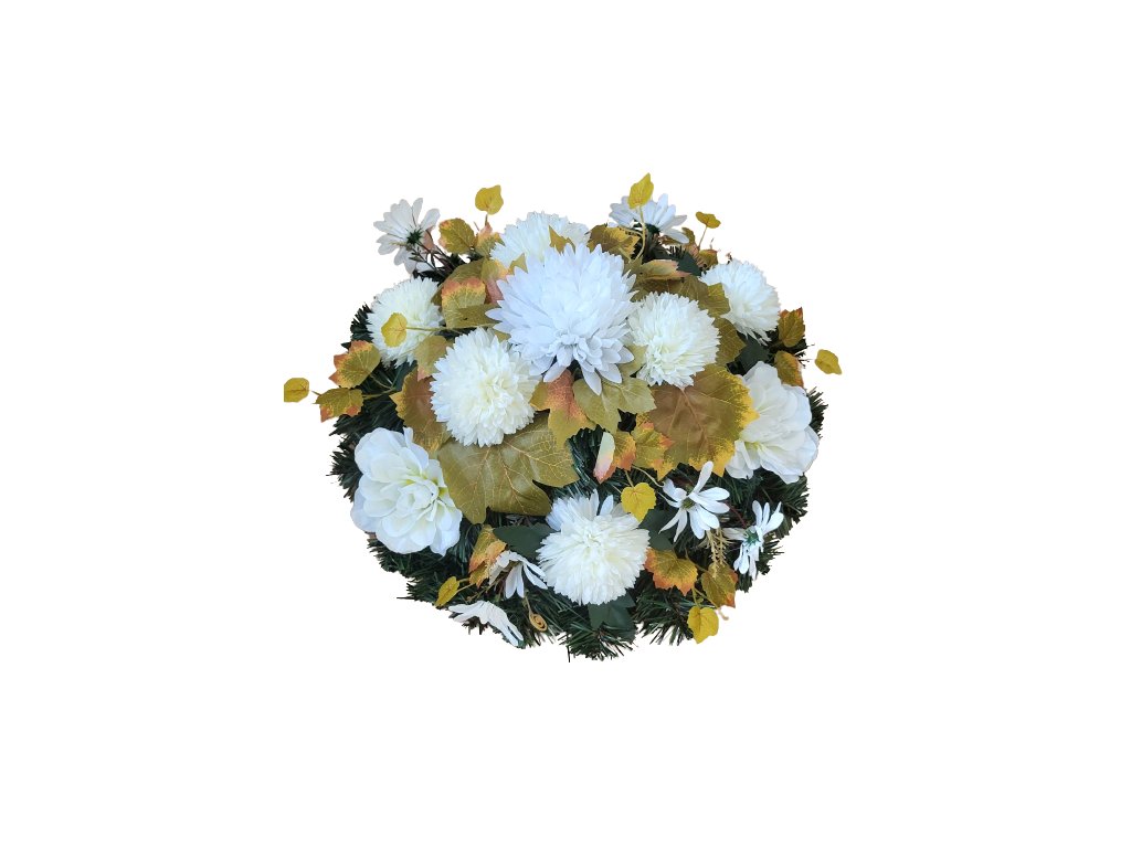 Smuteční věnec "kruh" umělé chryzantémy, dahlie a doplňky 40cm AS574