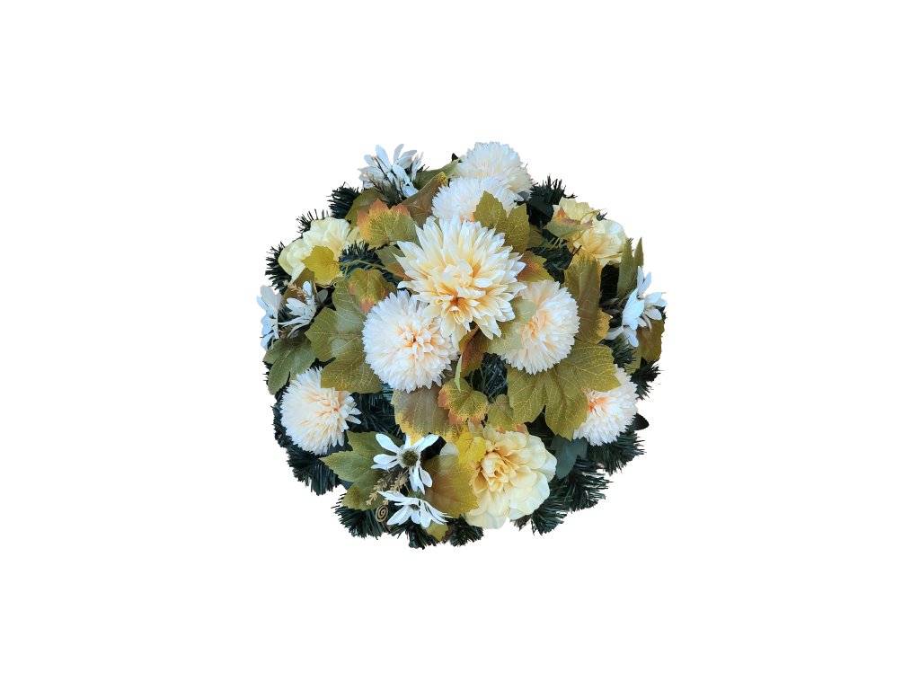 Smuteční věnec "kruh" umělé chryzantémy, dahlie a doplňky 40cm AS575