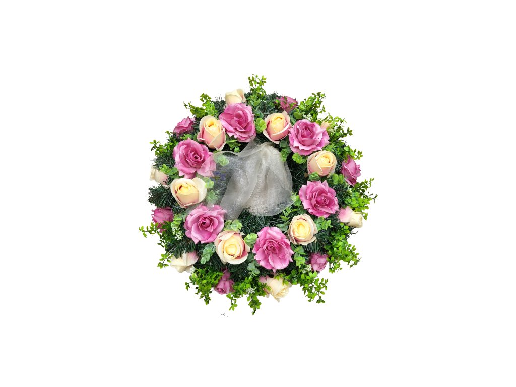 Smuteční věnec "kruh" z umělých růží a doplňky 55cm AS522