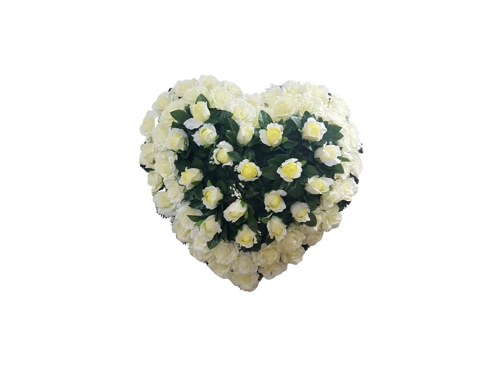 Smuteční věnec "Srdce" z růží 65cm x 65cm krémová umělý AS334