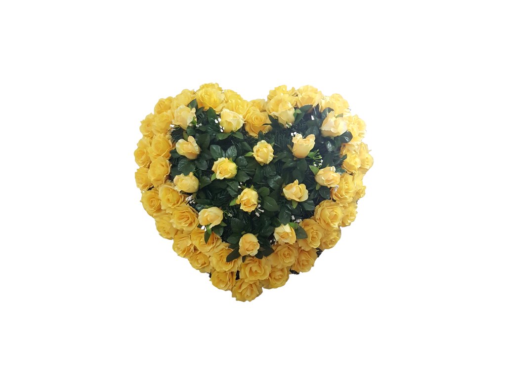 Smuteční věnec "Srdce" z růží 65cm x 65cm žlutá umělý AS333