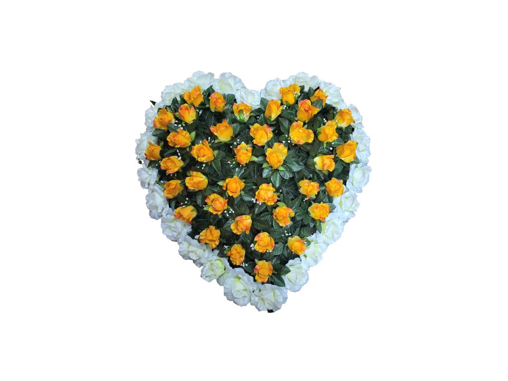 Smuteční věnec "Srdce" z umělých růží 80cm x 80cm krémový, oranžový AS466