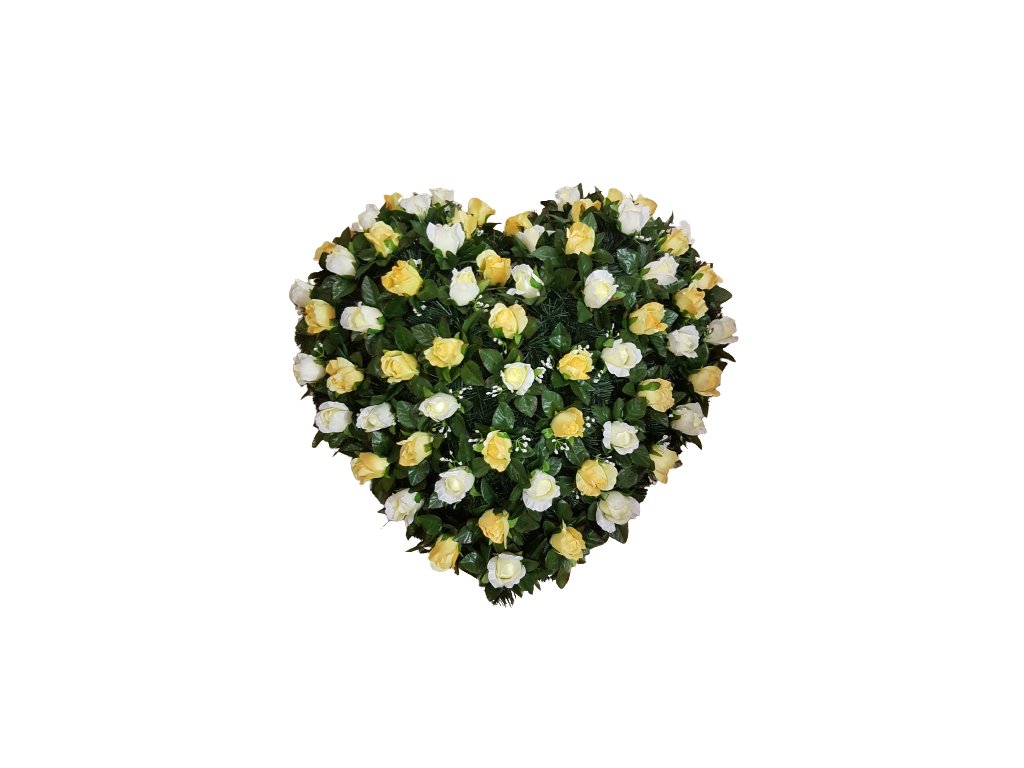 Smuteční věnec "Srdce" z umělých růží 80cm x 80cm žlutý & krémový AS283