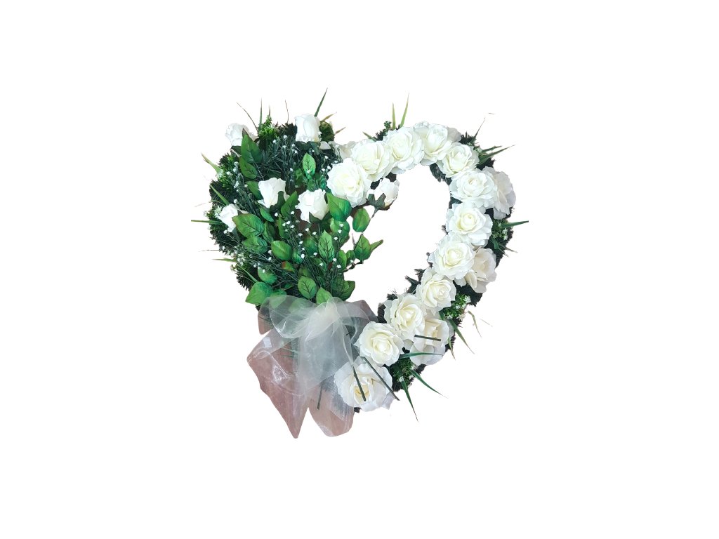 Smuteční věnec "Srdce" z umělých růží a doplňky 70cm x 70cm krémový AS428