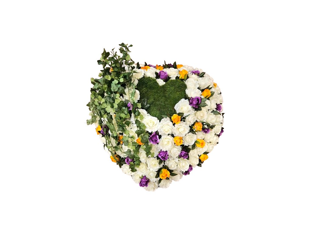 Smuteční věnec "Srdce" z umělých růží a s mechovým srdíčkem 80cm x 80cm AS814