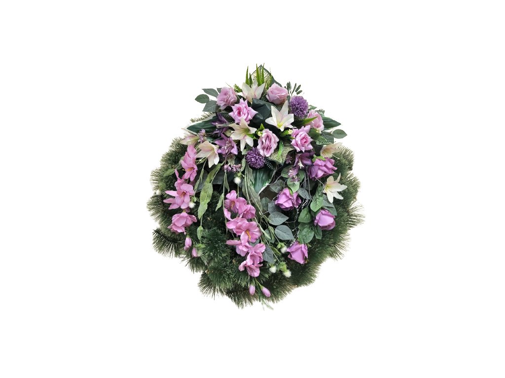 Smuteční věnec borovicový Exclusive Růže & Gladioly a Lilie & Doplňky 85cm AS454