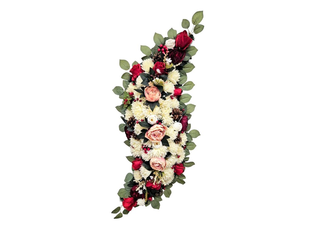 Smuteční věnec esíčko umělé růže, chryzantémy, pivoňky a doplňky 115cm x 45cm AS859
