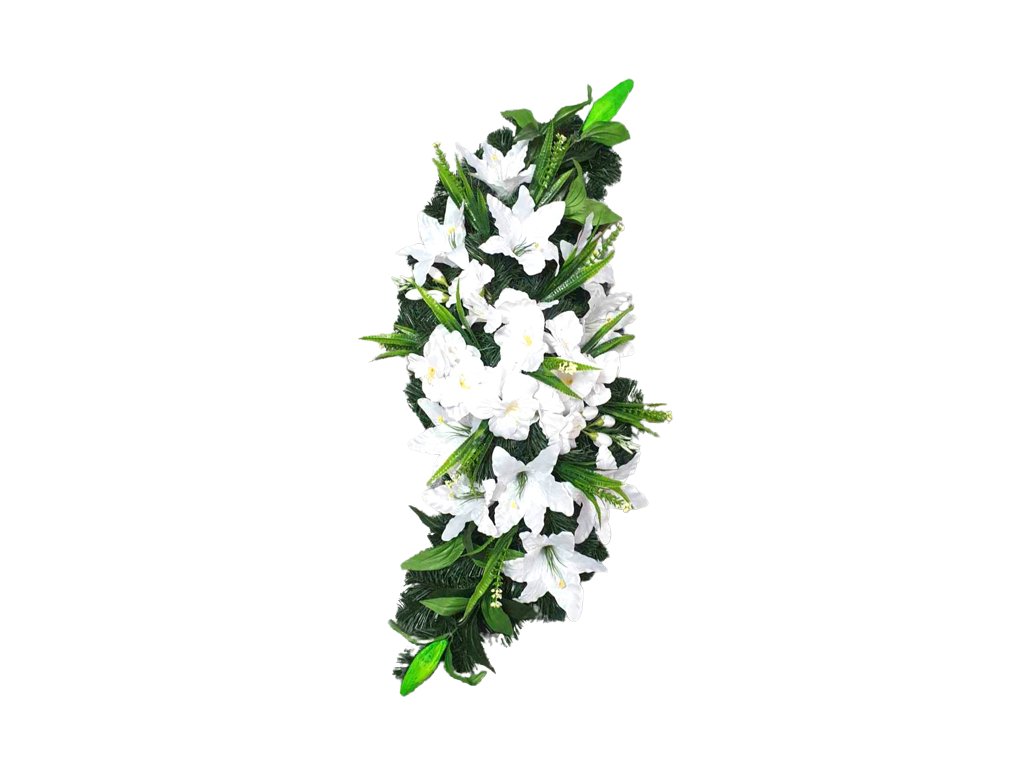 Smuteční věnec esíčko z umělých lilií 100cm x 35cm bílá, zelená AS355