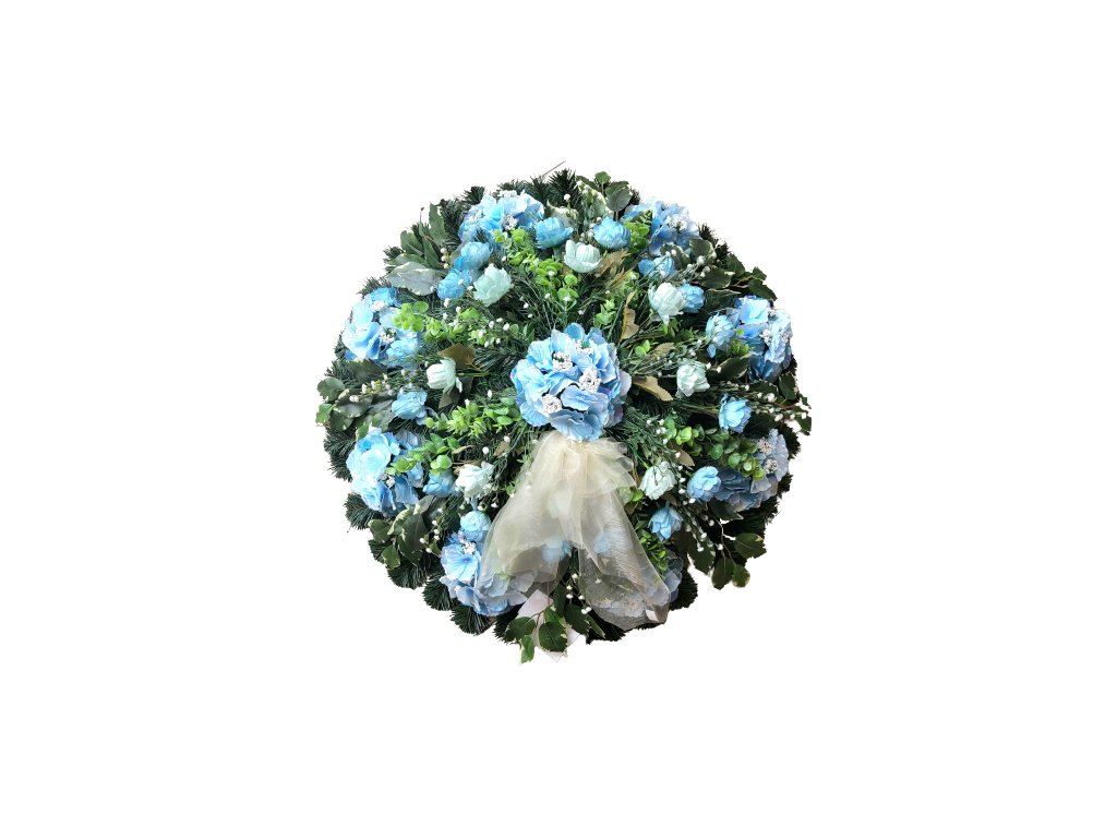 Smuteční věnec kruh umělé pivoňky, hortenzie a doplňky 80cm AS557