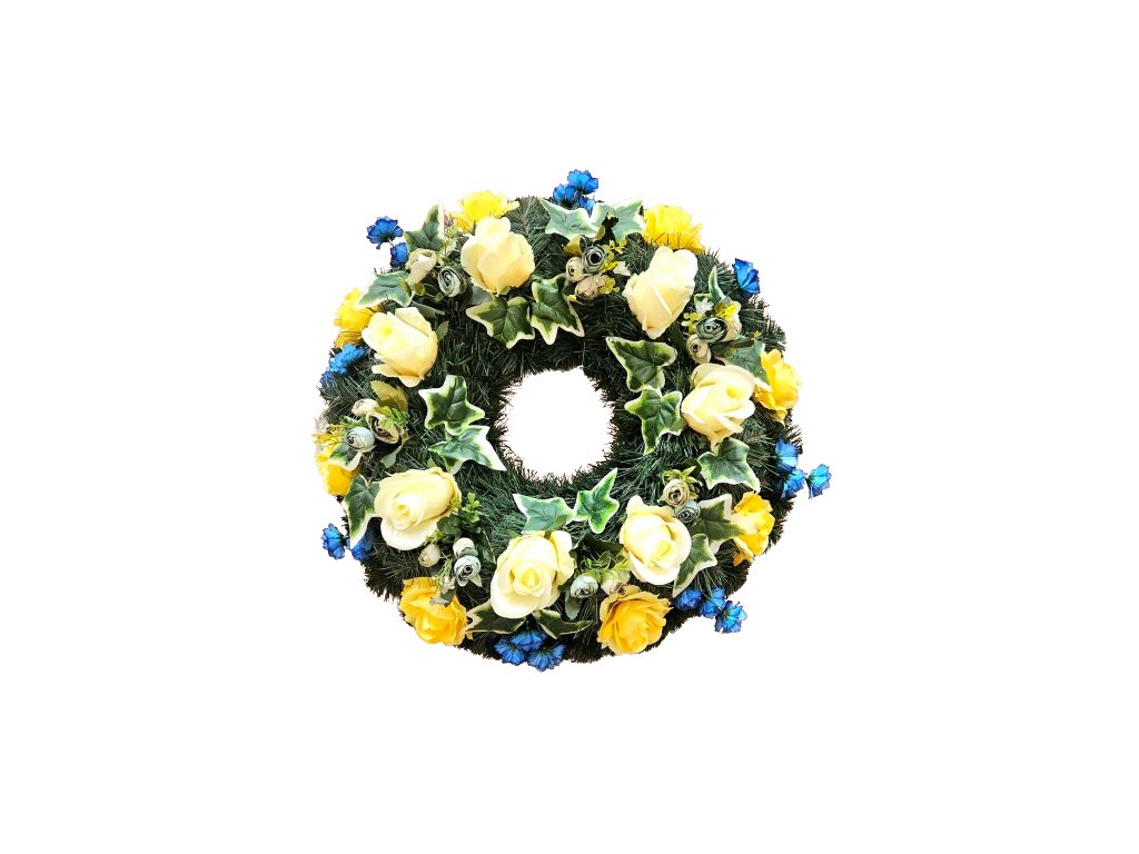 Smuteční věnec umělé růže a chrpa 60cm AS815