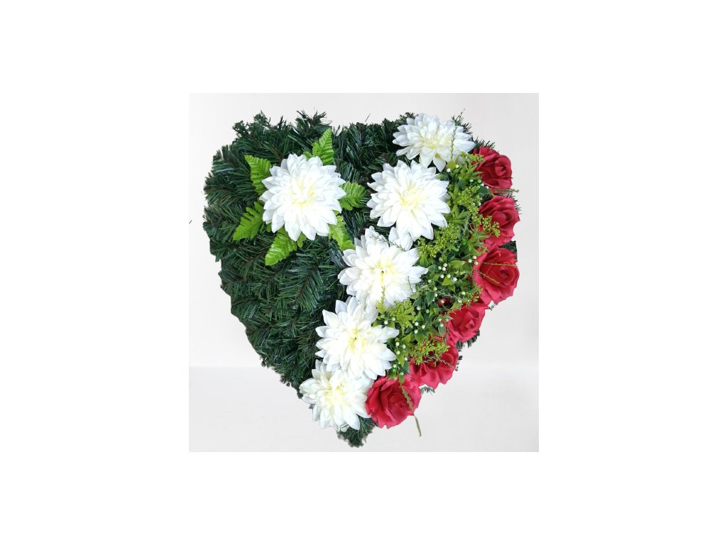 Umělý smuteční věnec "Srdce" Dahlie & Růže & doplňky 55cm x 55cm AS208