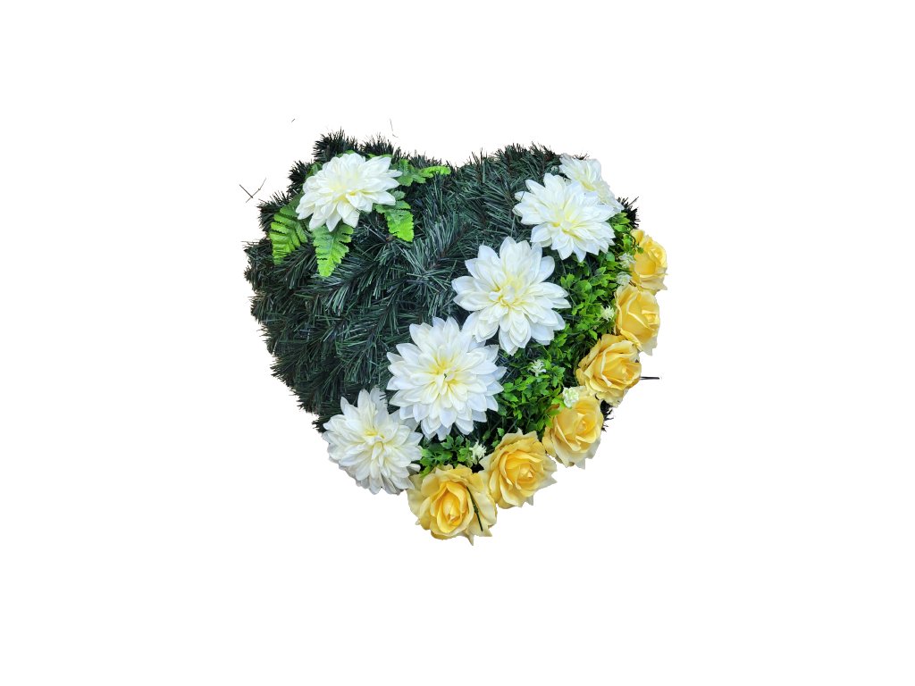 Umělý smuteční věnec "Srdce" Dahlie & Růže & doplňky 55cm x 55cm AS628