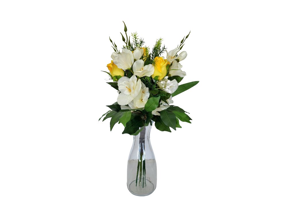Vázaná kytice Exclusive růže, gladioly mečíky, doplňky 53cm umělá