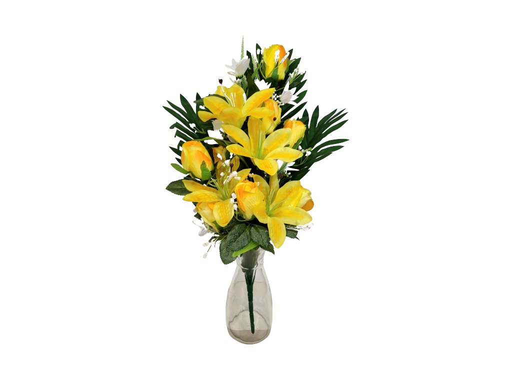 Růže a Lilie kytice x18 žlutá 62cm umělá