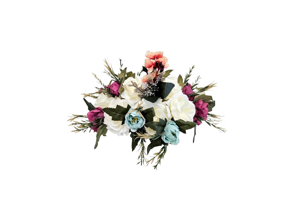 Aranžmán - Zdobená plastová miska s betonem a umělým chvojím Popis: Zdobená plastová miska s betonem a umělým chvojím. Ideální jako dekorace na hrob. Dlouhá životnost. Odolná proti větru. Váha od 0,5kg do 2kg. Ozdobena kvalitními umělými květinami. Květy jsou vyrobeny z hedvábí, látky nebo sametu. Použité květy jsou například umělé Růže, Magnolie, Chryzantémy, Lilie, Karafiáty, Hortenzie, Pivoňky a další. Podle specifikace v názvu produktu. Tyto aranžmány patří mezi naše nejprodávanější produkty