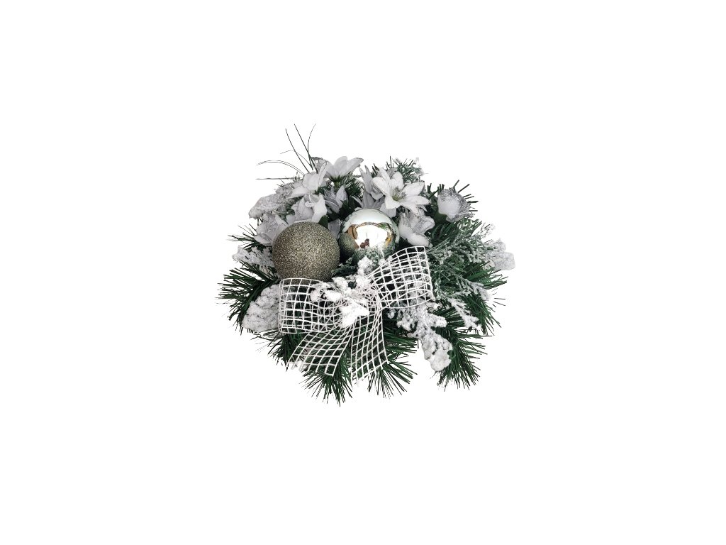 Vánoční smuteční aranžmán betonka exclusive umělé poinsettie, vánoční koule a doplňky 25cm x 15cm AS442